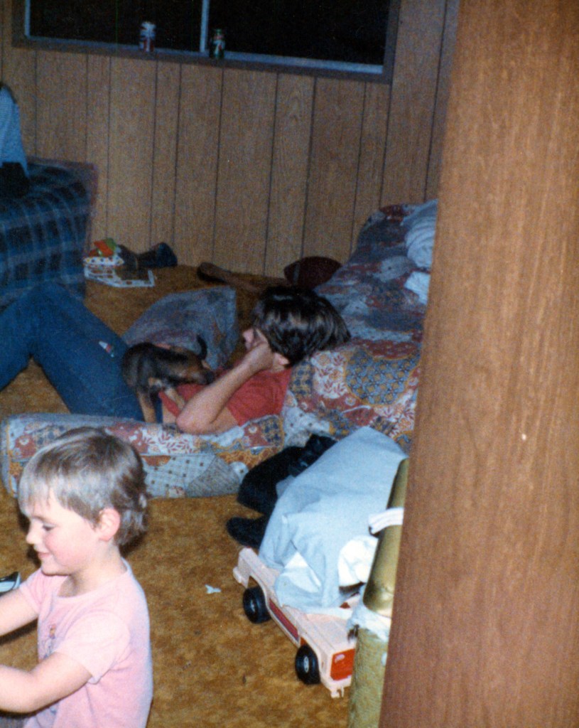 We would sit there (usually mom wouldn’t get up, it would almost always just be dad) because I wasn’t tired, and watch a movie or show in the dark on an old tv from the 70s. He would always ask if I was hungry and make me a fried bologna or spam sandwich, or homemade poutine, or share a kielbasa dog with me (he would try and get me. to eat sardines in a mustard sauce out of a tin but at the time I would never touch that), and we would just sit in the dark with me the whole night watching tv.