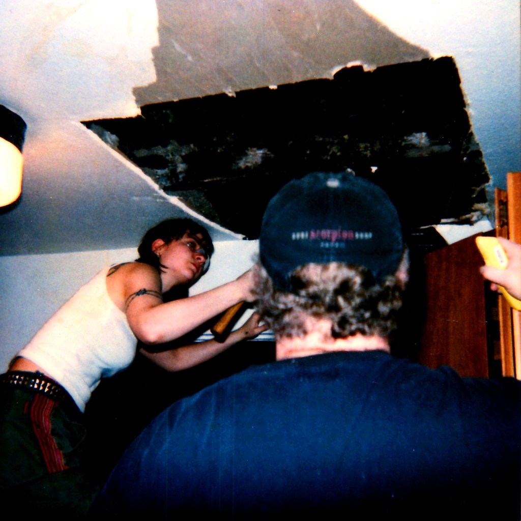 My hubby pre-transition and our friend Dunk trying to save the ceiling in the shithole apartment with horrific roommate and bad slumlord. Thanks for helping Dunk!
